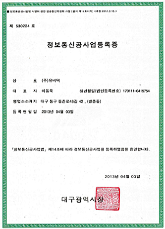 정보통신공사업등록증