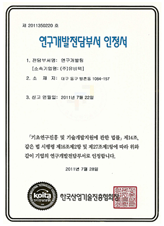 연구개발전담부서인정서
